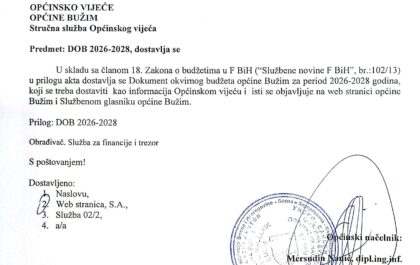DOKUMENT OKVIRNOG BUDŽETA- općina BUŽIM 2026-2028
