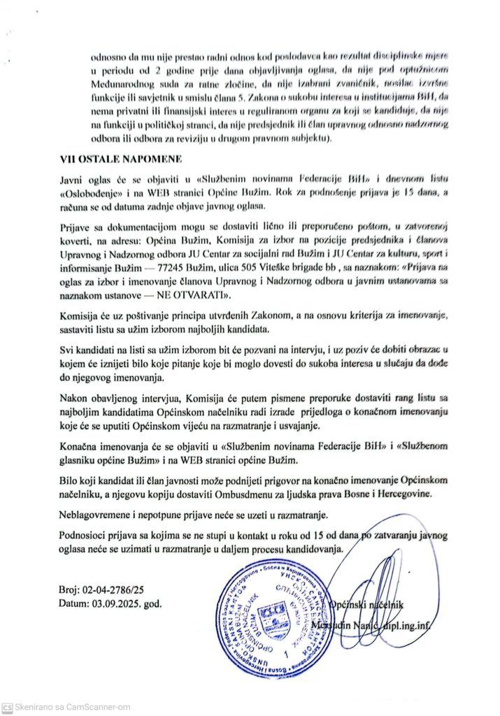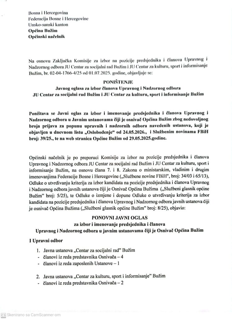 Ostalo, Vijesti Bužim SAZIV ZA XXVII REDOVNU SJEDNICU OPĆINSKOG VIJEĆA Agan Skenderović, 10 godina ago 1 min read