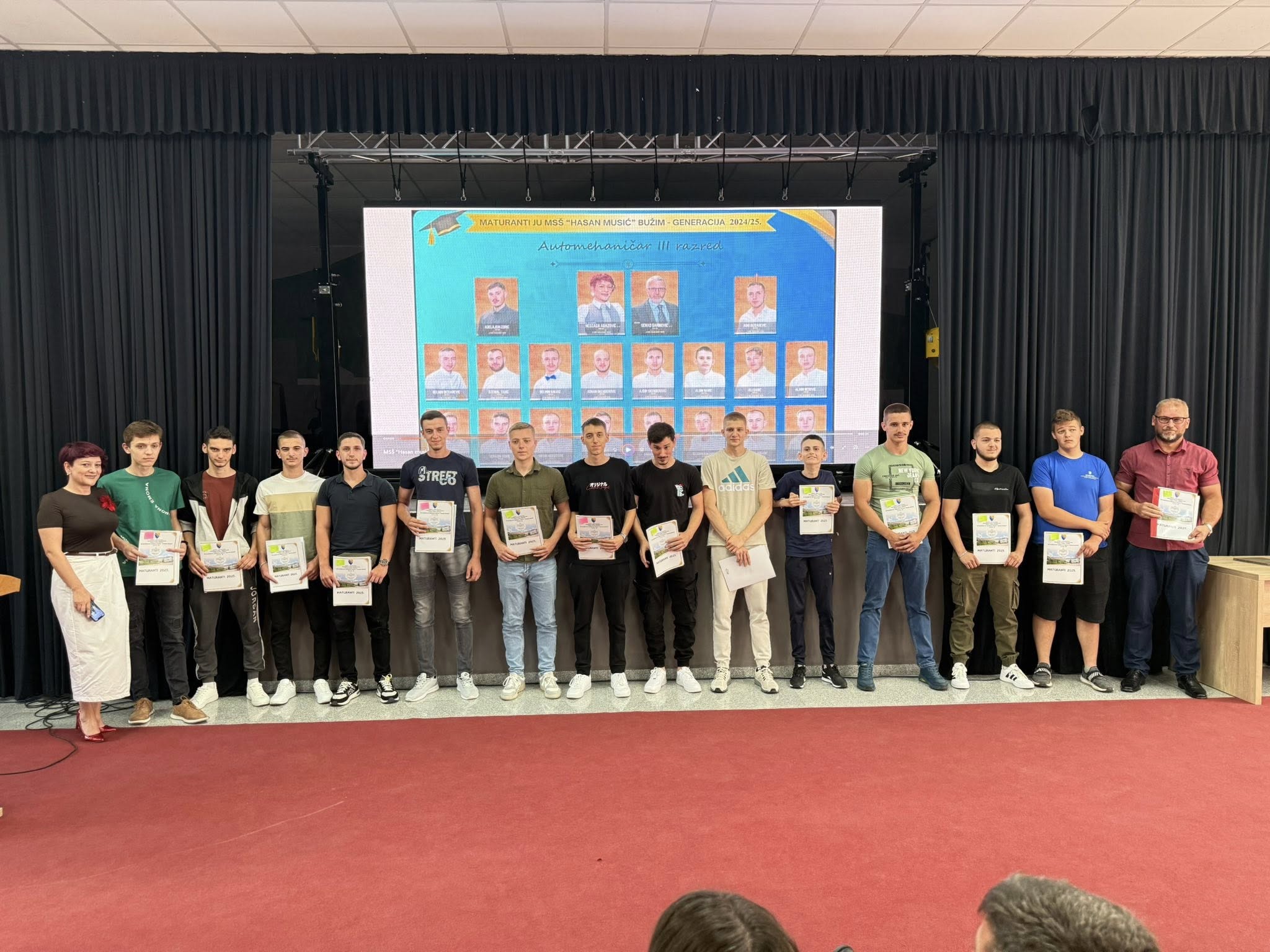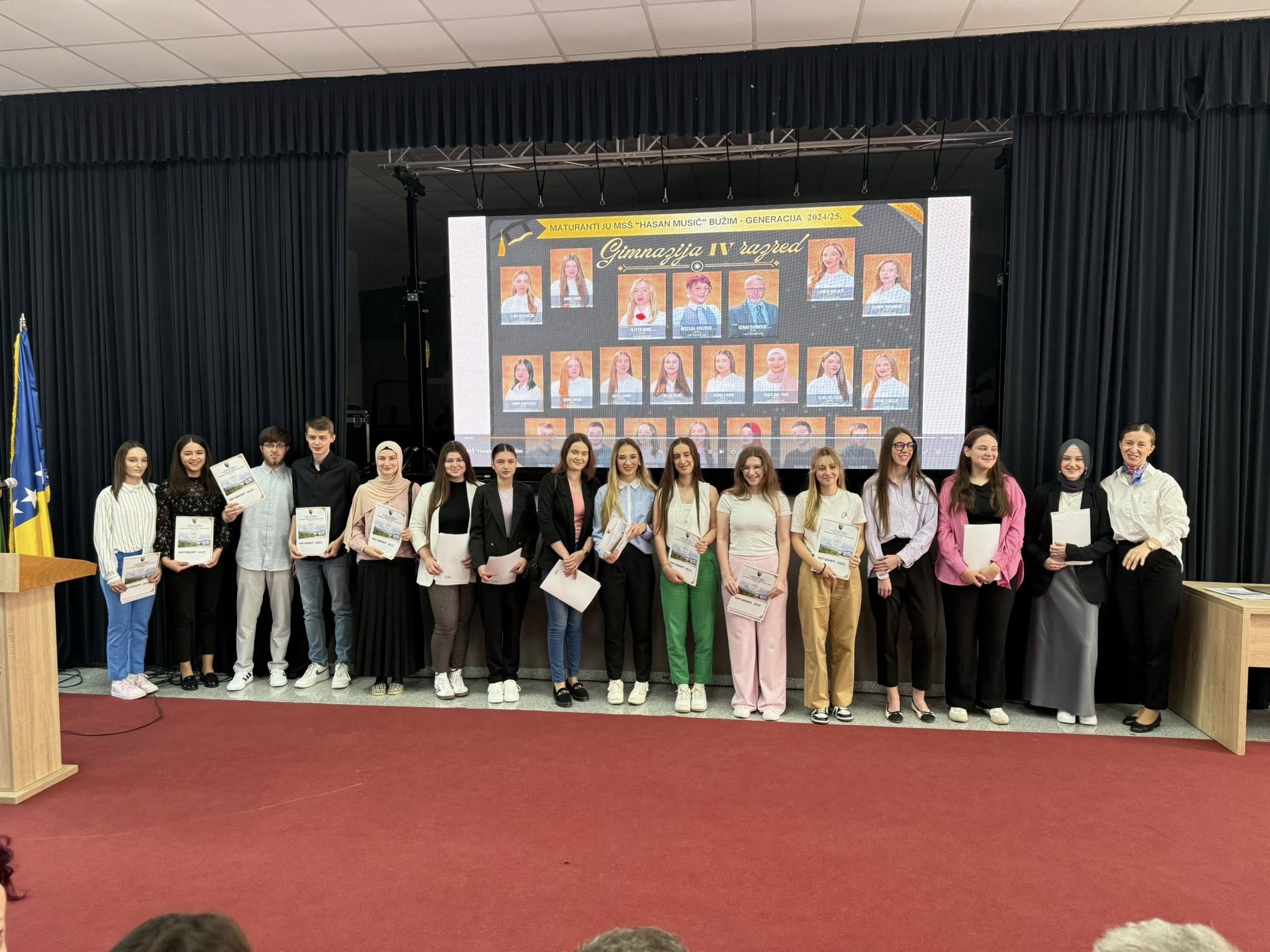 U organizaciji Mješovite srednje škole “Hasan Musić” Bužim, a u saradnji sa Općinom Bužim i JU Centrom za kulturu, sport i informisanje Bužim, održana je svečana dodjela diploma maturantima povodom završetka školske 2024/2025. godine.
