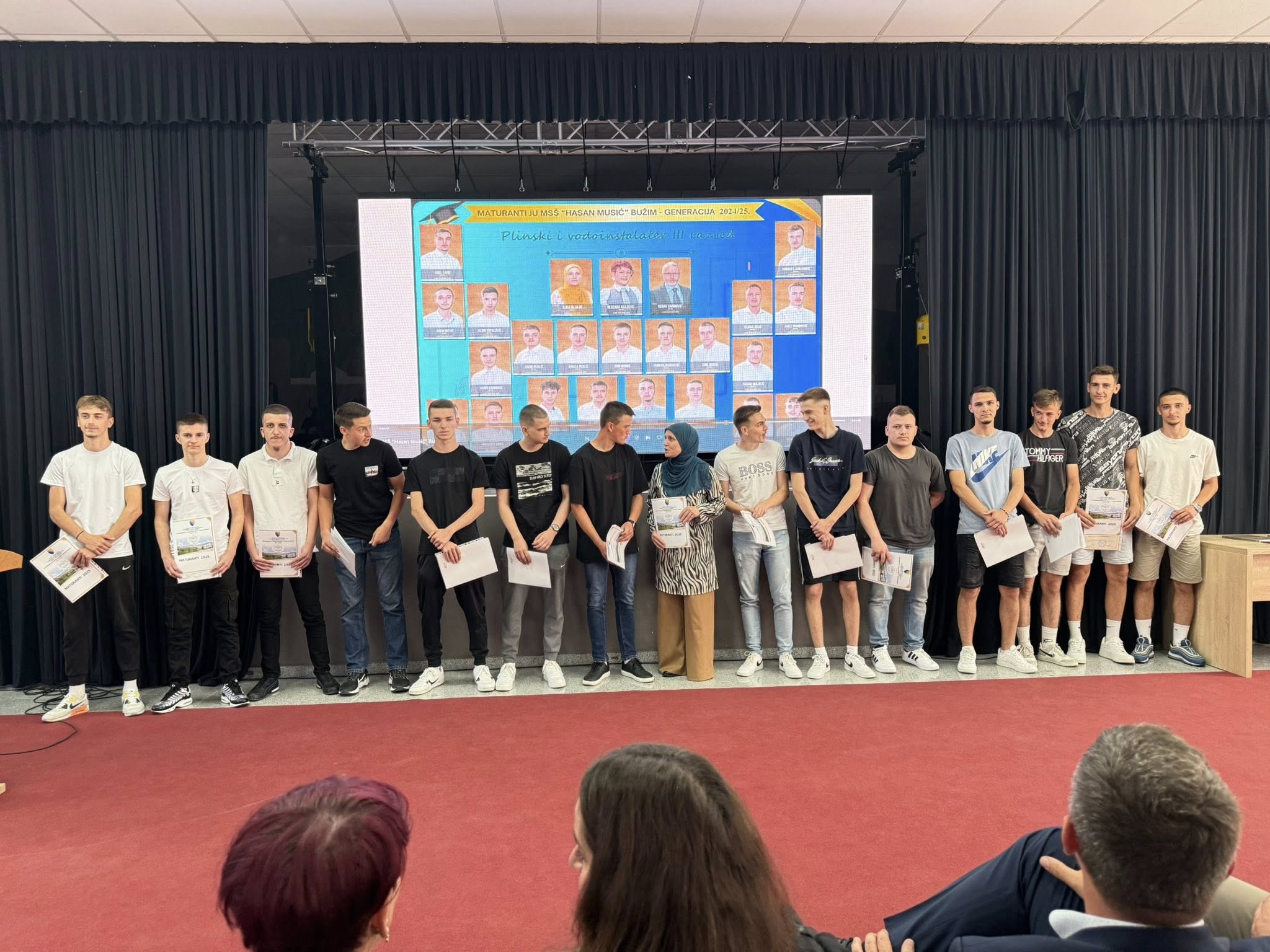 Svečanost je okupila maturante, njihove roditelje, profesore, te brojne goste, među kojima su bili i zastupnik u Skupštini Unsko-sanskog kantona Abid Mulalić, načelnik općine Bužim Mersudin Nanić i predsjedavajući Općinskog vijeća Suvad Veladžić.