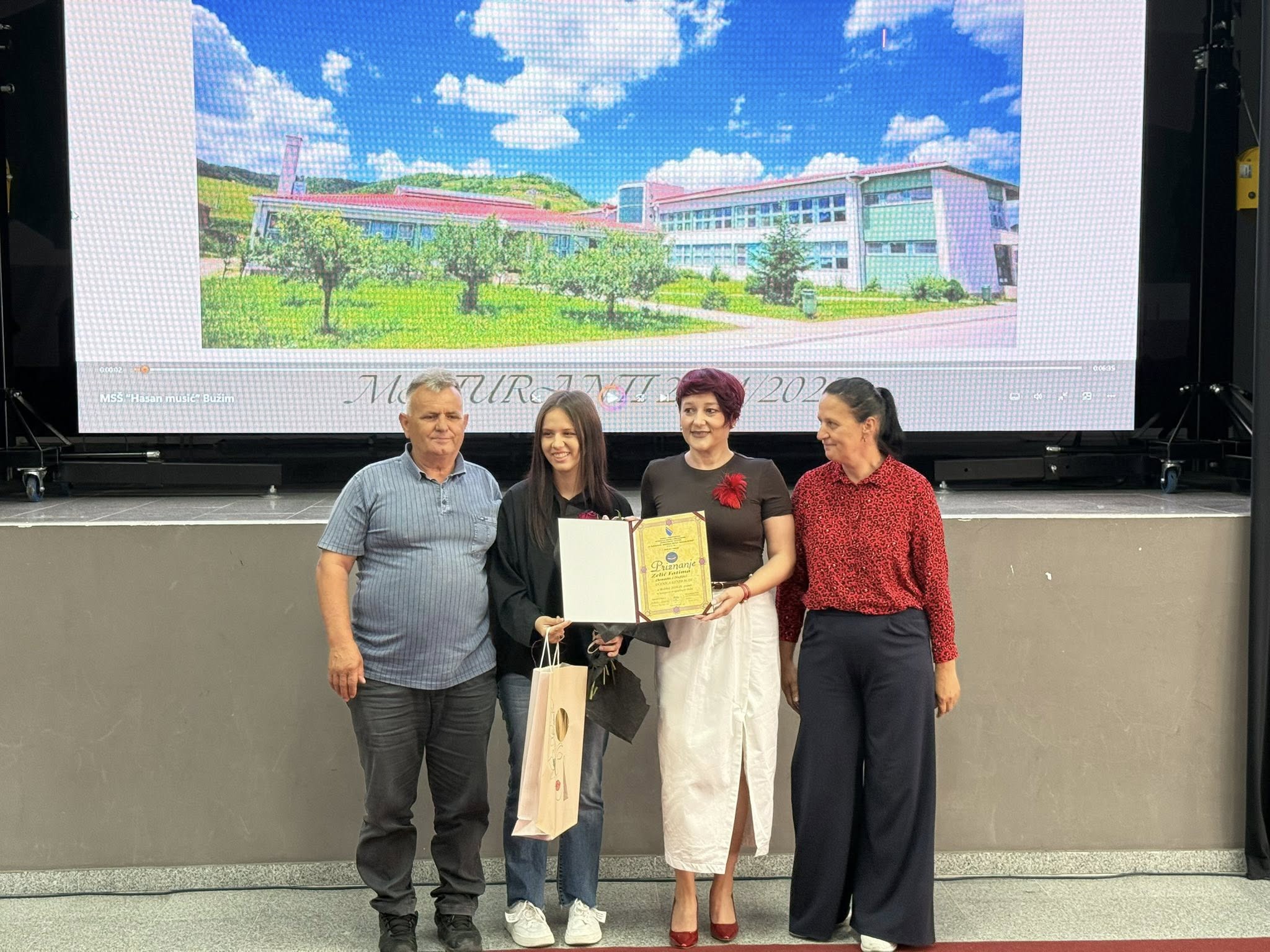 “Maturanti su ponos našeg društva i simbol predanog rada, truda i ustrajnosti. Danas ne slavimo samo kraj jednog poglavlja, već početak novih životnih izazova i uspjeha koji vas tek čekaju. Općina Bužim će i dalje biti podrška mladima u njihovom obrazovanju i razvoju, jer vjerujemo da upravo u njima leži budućnost našeg ponosnog i viteškog grada i jedine domovine BiH. Posebne čestitke upućujem učenicama generacije, Anesi Ćordić i Zelić Fatimi, koje su svojim rezultatima i ponašanjem postale uzor svojim vršnjacima. Čestitam i njihovim roditeljima, čiji trud, podrška i odgoj su neizostavan dio ovog velikog uspjeha.“