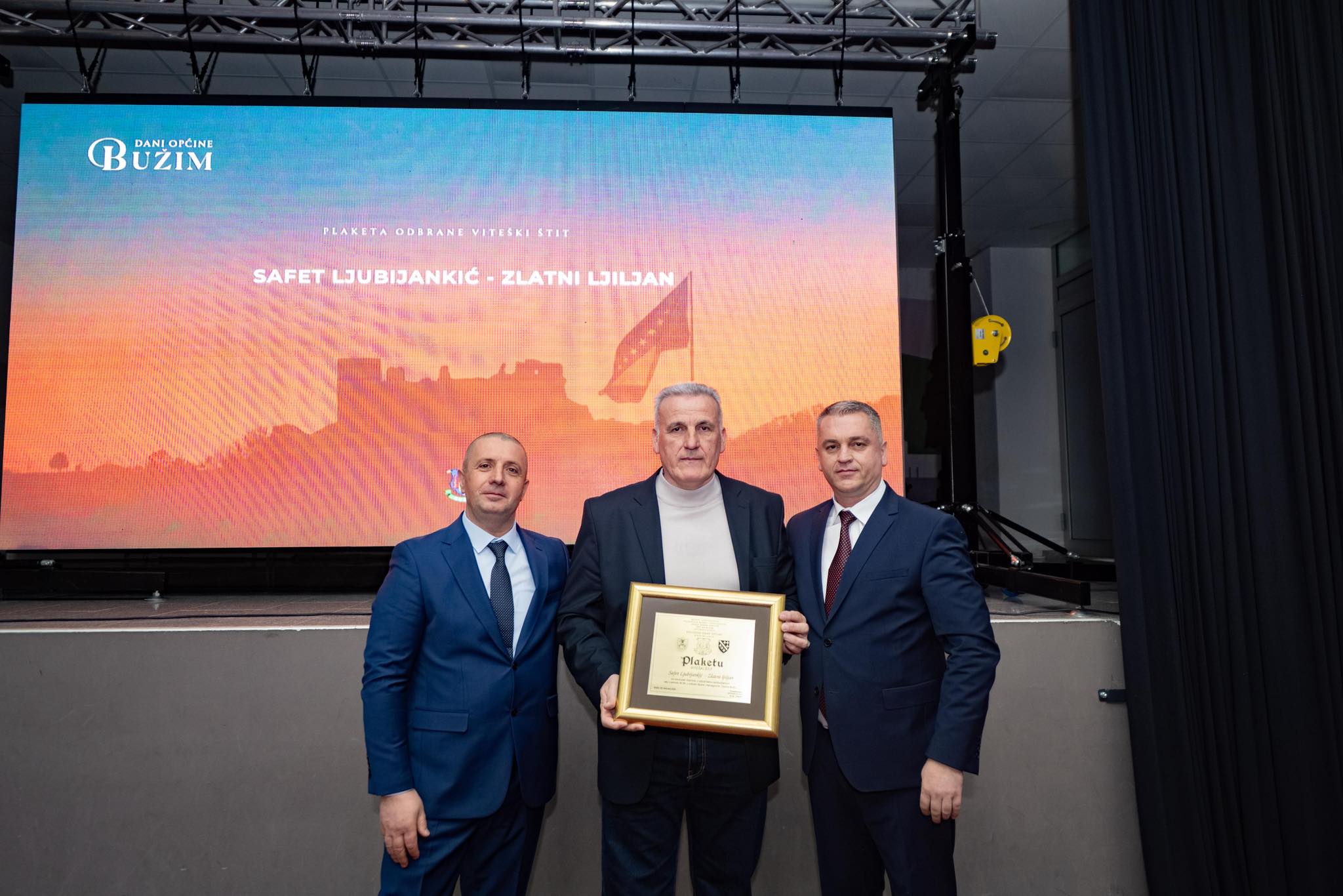 Posebno emotivan trenutak bilo je uručenje priznanja Plaketa odbrane „Viteški štit“ dodijeljena je Safetu Ljubijankiću i Nijazu Velagiću (posthumno) za izuzetna ostvarenja u odbrani domovine, uz snažnu poruku da Bužim nikada ne zaboravlja svoje heroje.