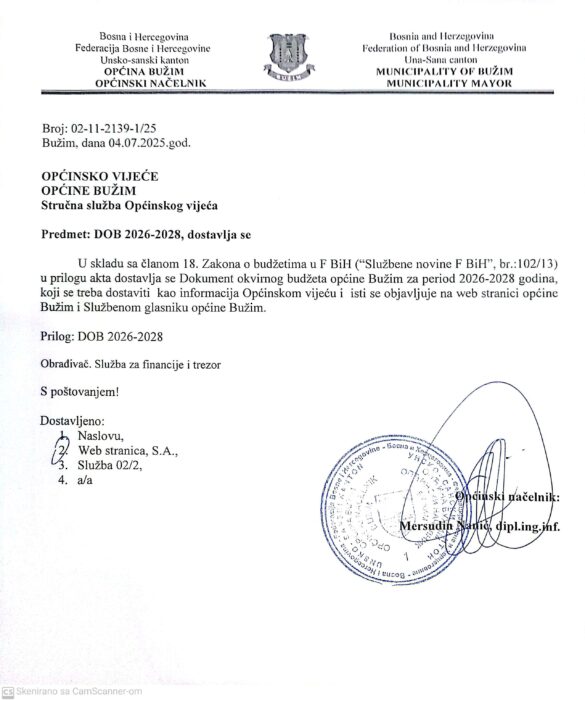 Budžet općine Bužim za 2024.godinu objavljen u Službenom glasniku općine Bužim. Sluzbeni_Glasnik_1_24