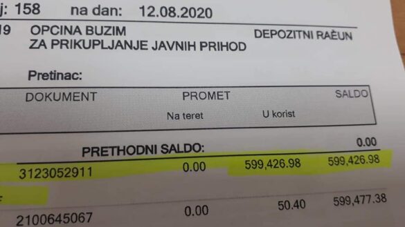 FEDERALNA VLADA OPĆINI BUŽIM UPLATILA 599.426,98 KM